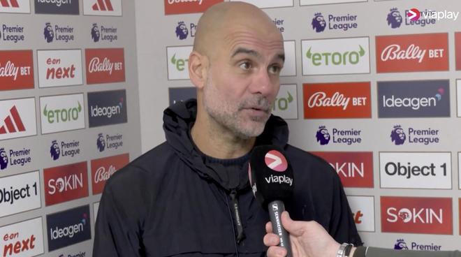 英超第18輪,曼城客場2-1擊敗諾丁漢森林,賽后,曼城主帥瓜迪奧拉接受了Viaplay Fotball的采訪。
