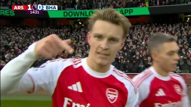 此役主場(chǎng)對(duì)陣布萊頓,比賽第14分鐘,厄德高在禁區(qū)外接薩卡傳球后遠(yuǎn)射破門,幫助阿森納取得1-0領(lǐng)先。